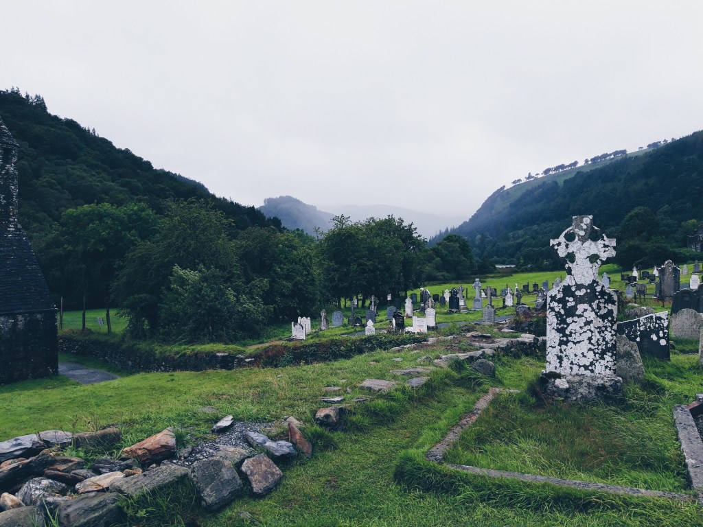Très connu pour sa cité monastique le village de Glendalough est perdu au milieu des monts de Wicklow. Nous avions décidé de passer deux jours dans la région avant de repartir pour l’aéroport de Dublin et malheureusement nous avons eu une journée de pluie non-stop mais nous avons quand même décidé de braver les torrents pour visiter le coin.
